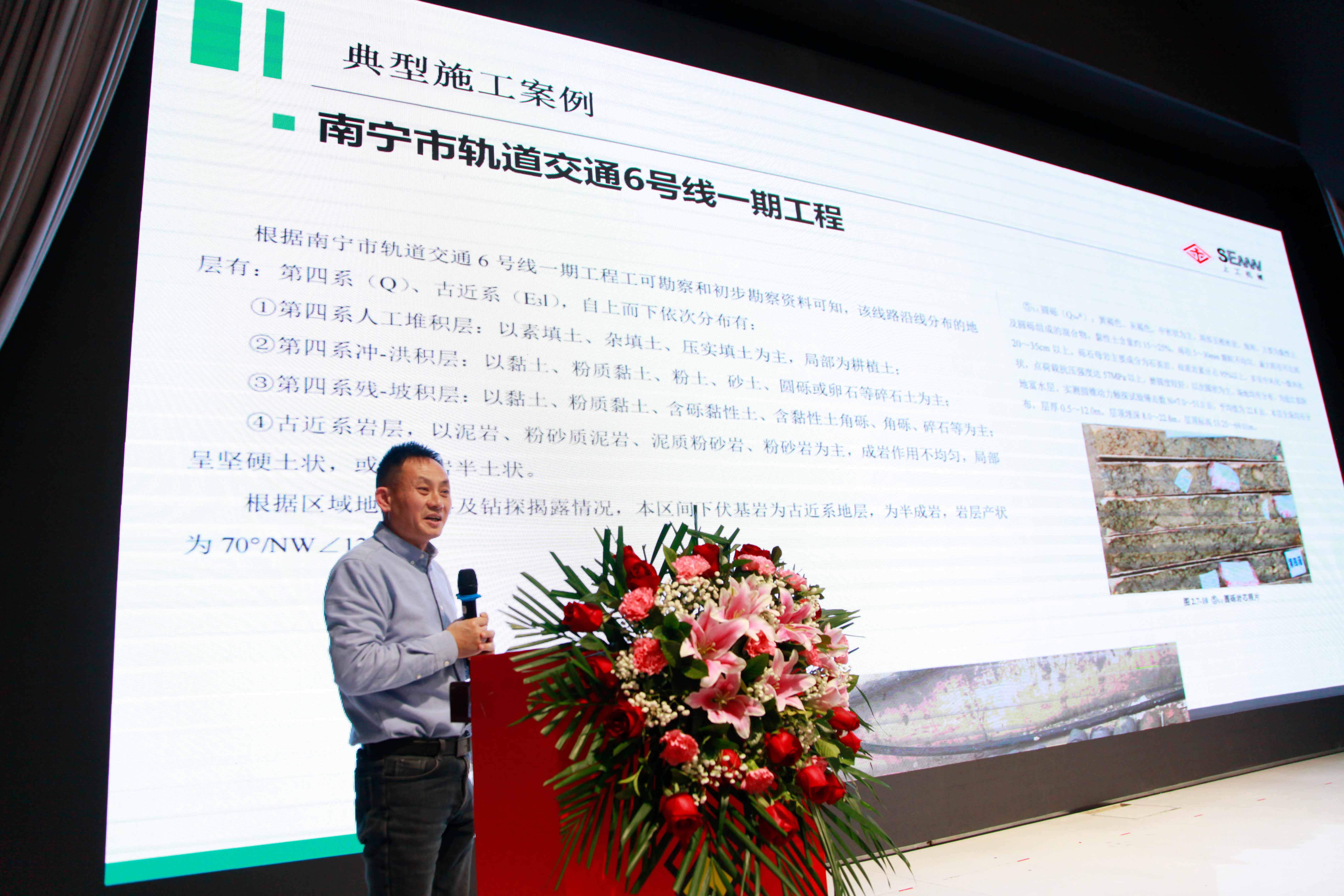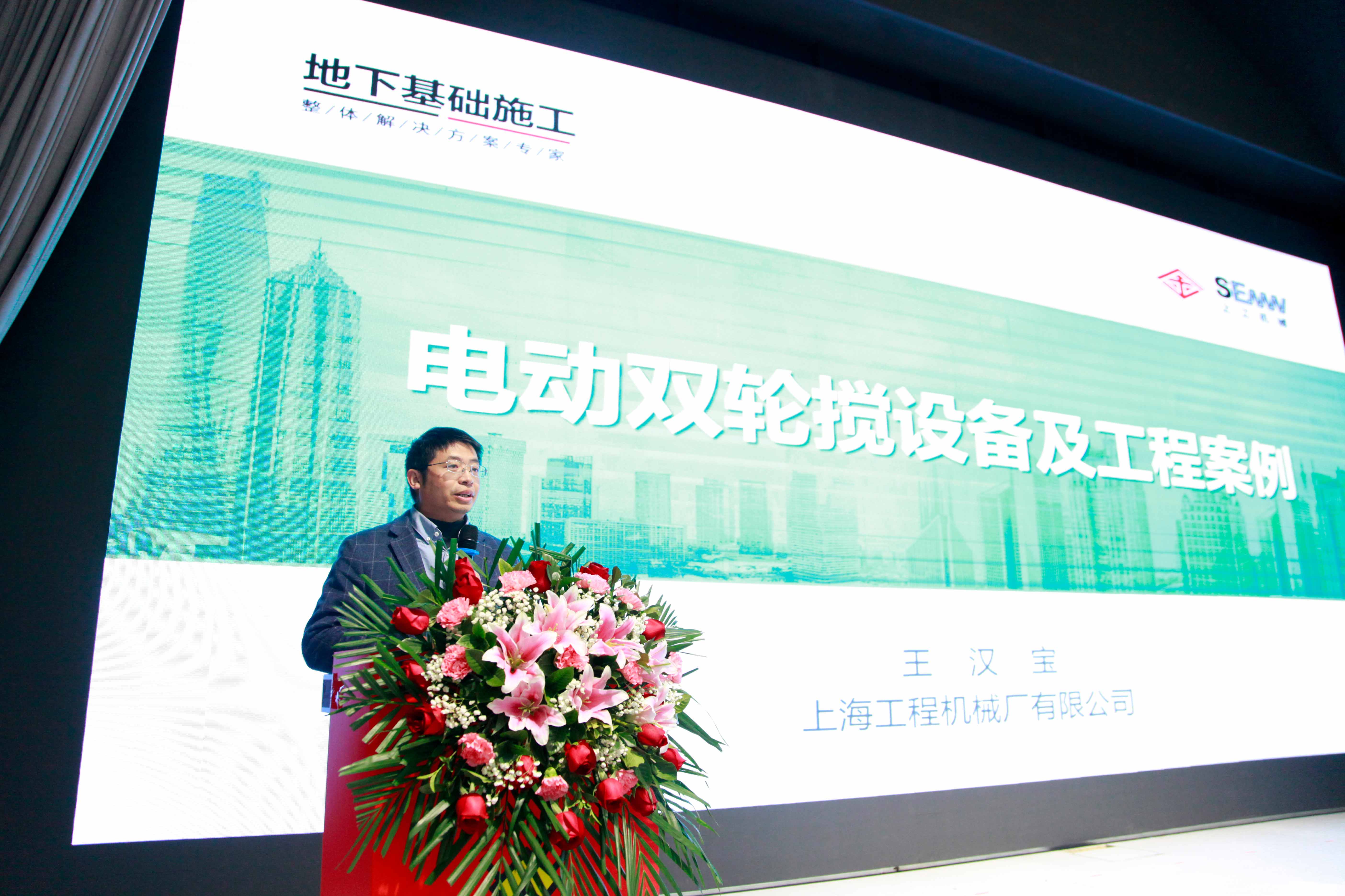 随后,会议进入专题分享环节。上工机械营销副部长王汉宝做《纯电双轮搅设备介绍及工程案例》主题报告。