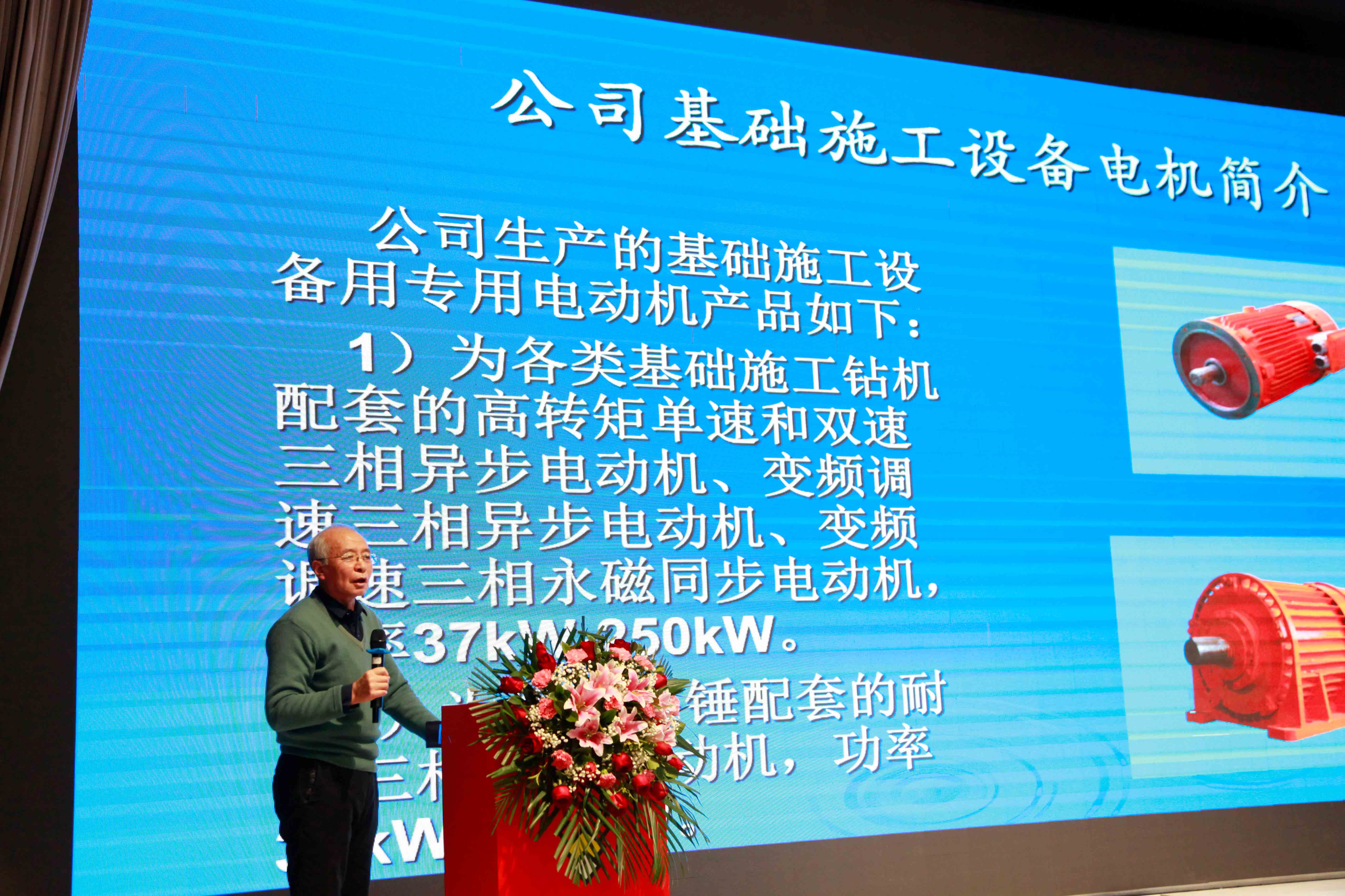 天津神川电机有限公司总工潘立国做《基础施工设备电动特性》主题报告。