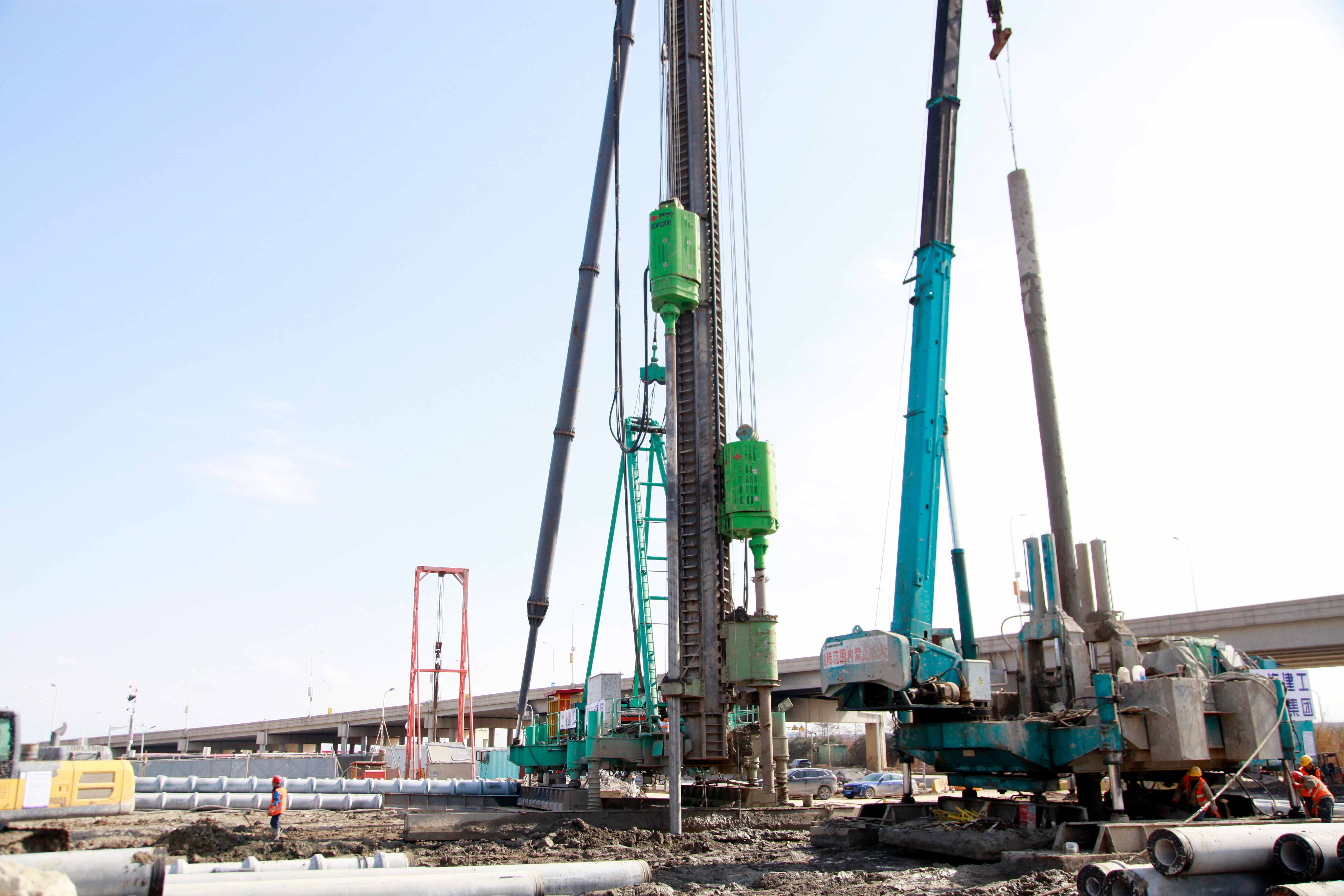 项目采用上工机械SDP150H/220H静钻根植桩工法钻机设备进行植桩作业,该设备采用智能化施工管理软件,对施工过程实时监控,确保施工质量,各项施工数据清晰反映在显示器上并自动存储,可输出打印,并实现远程监控。同时设备的液压扩底技术性能可靠,采用品质卓越的液压元器件,确保在深度80m下,液压扩底正常工作。钻具经过特殊设计与制造,强度大,抗弯性好,耐磨性好减少维护成本。