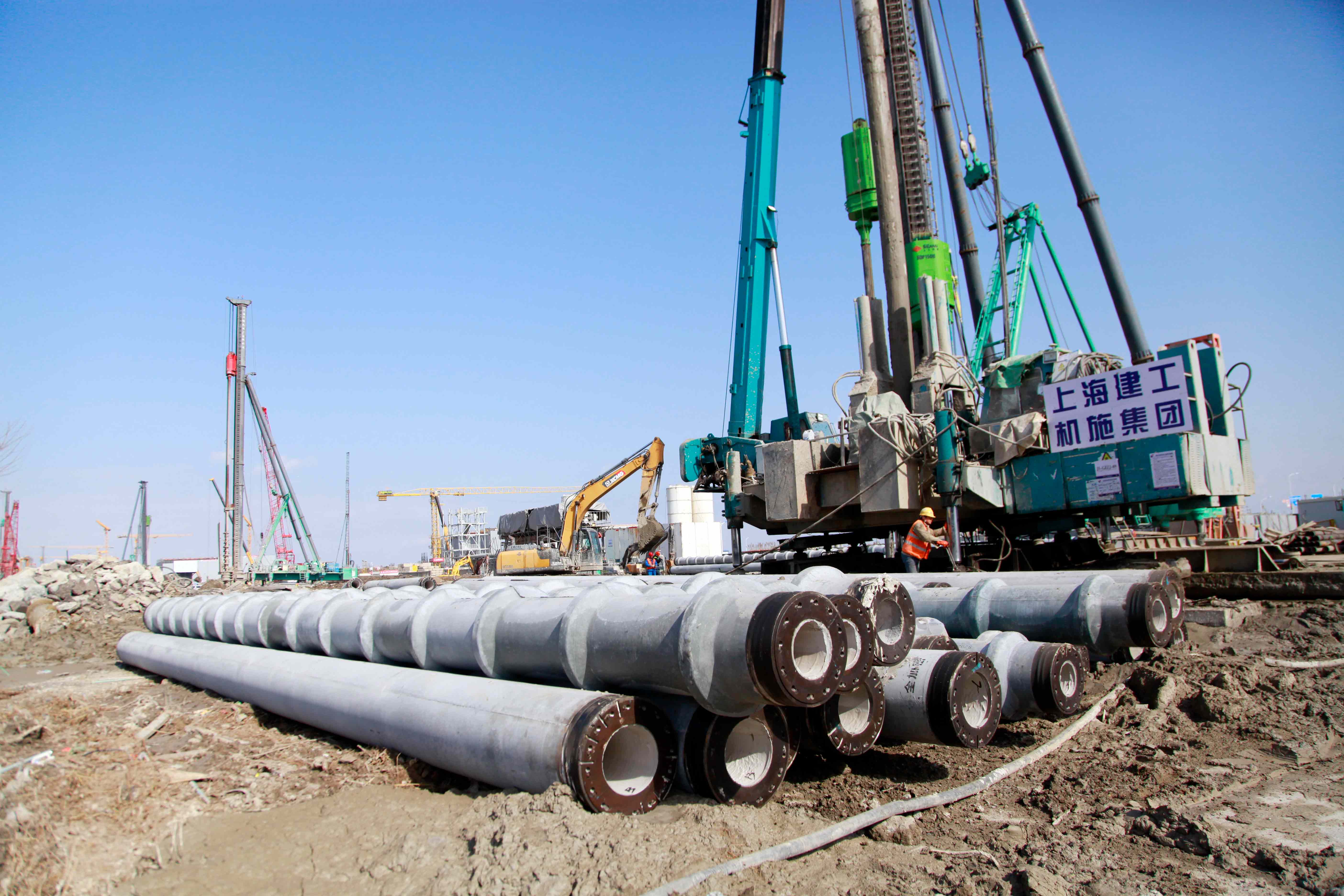 “绿色桩基”托起世界级空港新地标!上工机械静钻根植桩设备护航浦东机场四期航站区工程!